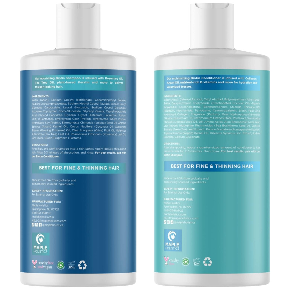 Shampoo e Condicionador de Óleo de Argan e Jojoba Para Tratamento de Queda de Cabelo 236ml, MAPLE HOLISTICS MH Biotin Set 1, Azul Marinho: SHAMPOO E CONDICIONADOR ESPESSADOR DE CABELO para queda de cabelo.