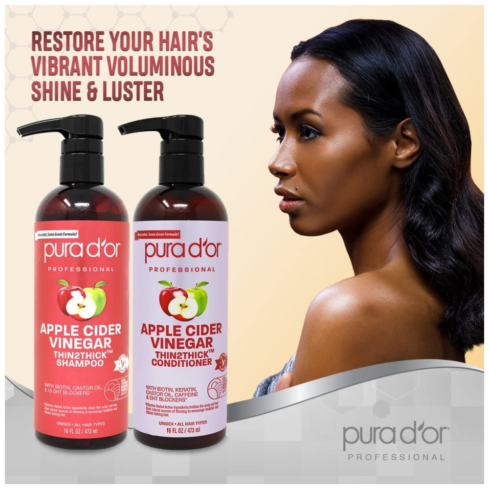 Shampoo e Condicionador Óleo de Argan Todos os Tipos de Cabelos Homens e Mulheres 473ml, PURA DOR, Marrom Escuro: HIDRATAÇÃO PARA CABELOS MAIS COMPLETOS Ambos os nossos xampus e condicionadores de vinagre de cidra de maçã são feitos com propriedades hidratantes incríveis para proporcionar hidratação superior aos cabelos e couro cabeludo, enquanto incentivam os cabelos a crescerem mais e mais grossos.