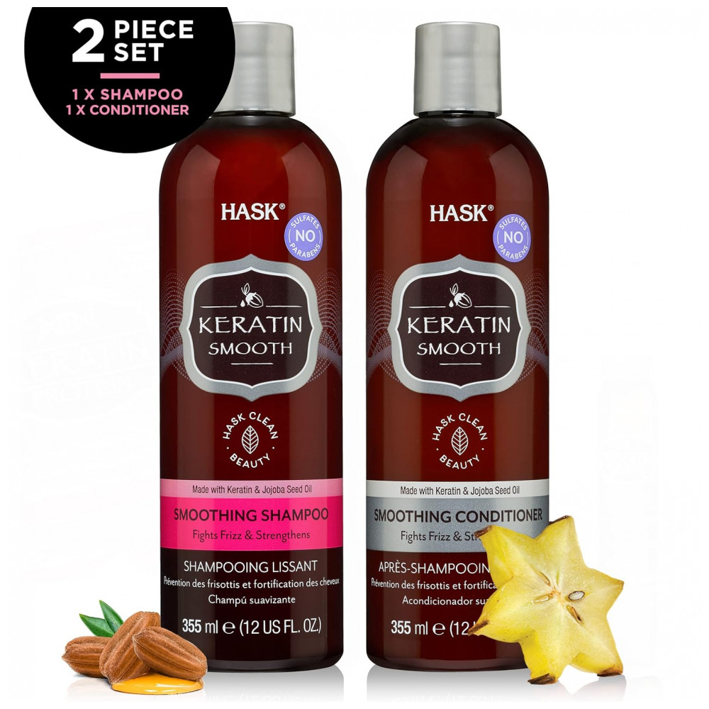 Shampoo e Condicionador Todos Tipos de Cabelos Retarda a Queda Para Homens Mulheres 355ml, HASK EXOTICS, Marrom Escuro: OVERSTYLED Dê aos cabelos danificados e processados uma reforma milagrosa com a HASK Keratin Protein Smoothing Collection, projetada para restaurar, revitalizar e fortalecer os cachos ressecados e crespos INF COM QUERATINA HIDROLISADA Reduzindo o frizz e bloqueando a umidade, este shampoo limpa suavemente, deixando até o máximo cabelos rebeldes, macios e revitalizados com brilho incrível SUPER FORÇA A queratina trabalha para revestir o fio capilar, reduzindo pontas duplas e melhorando a aparência e a capacidade de gerenciamento do cabelo O KIT INCLUI 1 Shampoo e 1 Condicionador para refrescar e revitalizar GRATUITO DE Sulfatos, parabenos , ftalatos, glúten e álcool de secagem
