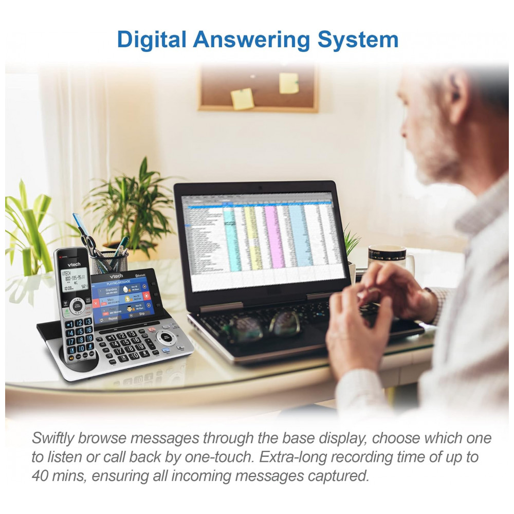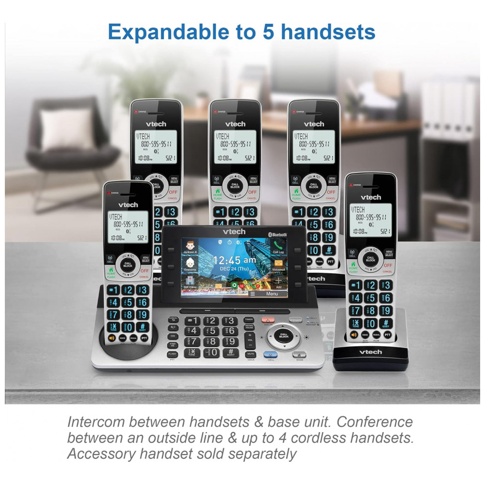 Sistema de Telefone sem Fio com Atalho Programável e Bluetooth, 5 Aparelhos, VTech IS8251: Telefone sem fio para negócios, construído para facilitar o uso em casa O VTech IS8251 sem fio oferece excelente clareza e alcance, garantindo a mais alta qualidade em comunicações de voz para chamadas comerciais ou privadas.
