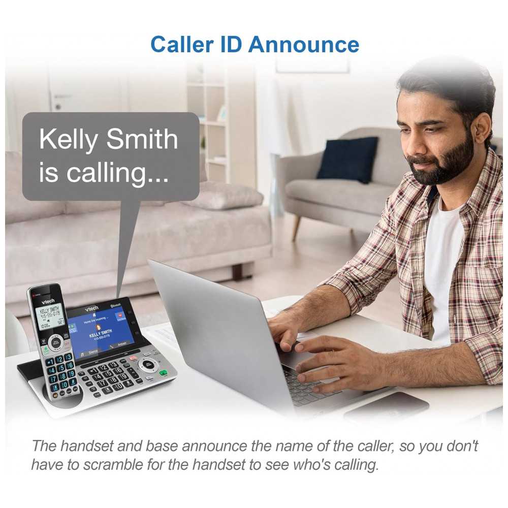 ID do chamador Anuncie O aparelho e a base anunciam o nome do chamador, para que você não precise procurar o aparelho para ver quem está ligando.