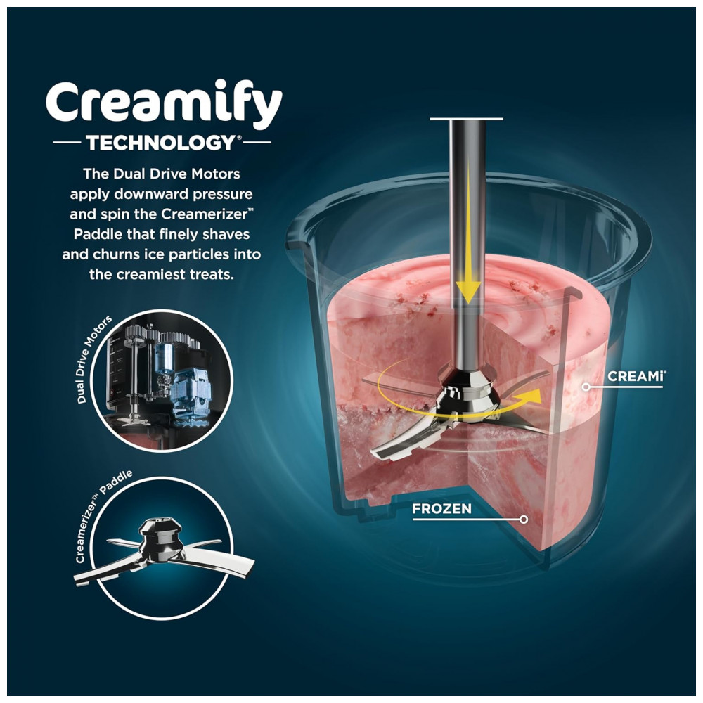 TECNOLOGIA CREAMIFY A tecnologia Creamify permite que o CREAMi desfaça um bloco congelado uniforme em uma textura incrivelmente suave e cremosa.