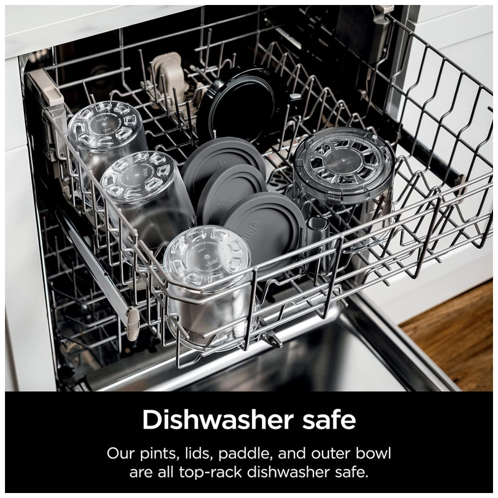 O QUE ESTÁ INCLUÍDO Base do Motor com 7 Programas com um Toque, 2 Potes de 473 ml com Tampas de Armazenamento, Pá Creamerizadora e 1 Tigela Externa e Tampa.