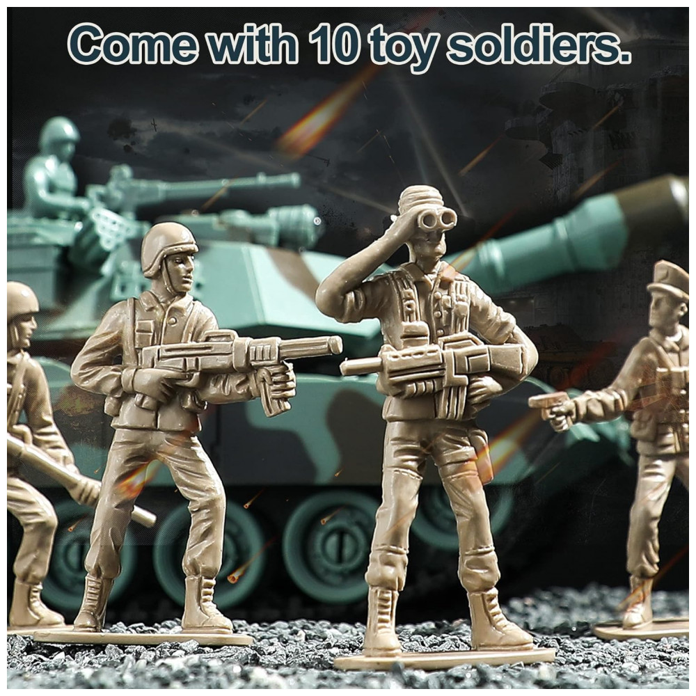 Este tanque de controle remoto também vem com 10 brinquedos de soldado de qualidade, proporcionando uma oportunidade para brincadeiras imaginativas e um campo de batalha expandido.