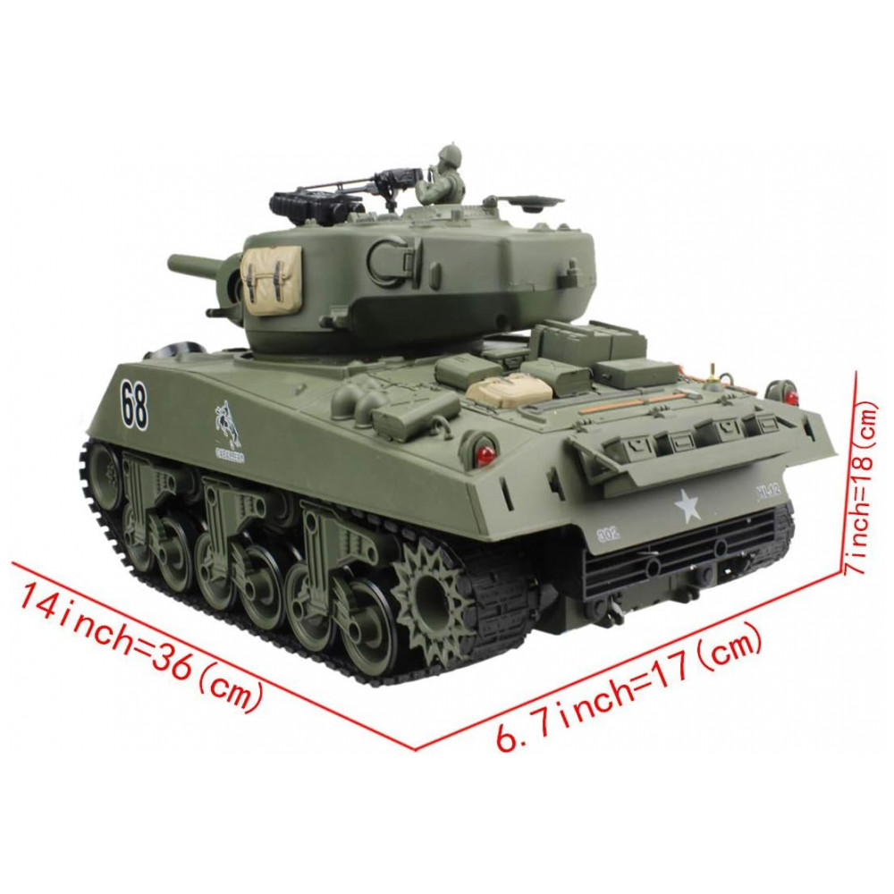 Tanque Sherman M4A3 para Adultos com Controle Remoto 2.4Ghz, 15 Funções e Disparo de Airsoft, Verde