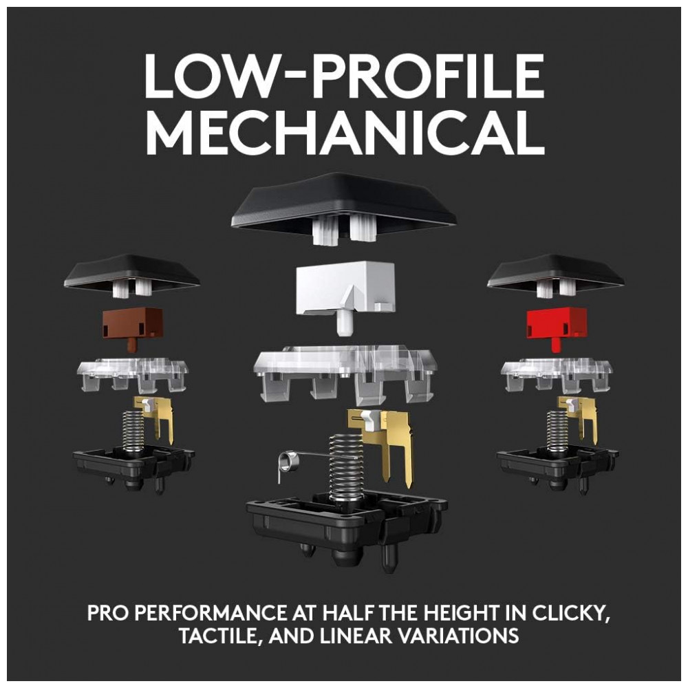 Teclado Ergonômico Sem Fio Recarregável Reduz a Tensão das Mãos com Luz LED, LOGITECH G 920 009176, Preto: Interruptores mecânicos de baixo perfil oferecem a velocidade, precisão e desempenho de um interruptor mecânico na metade da altura.