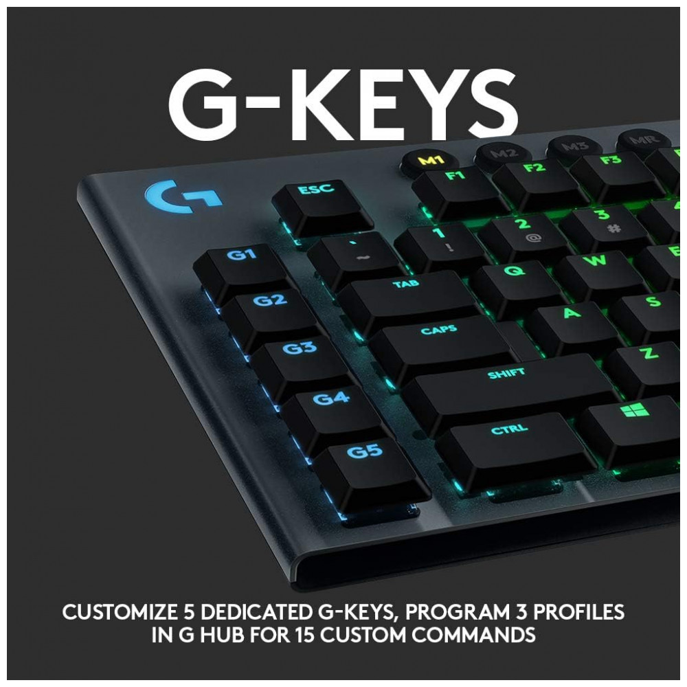 Personalize cada tecla ou crie animações personalizadas a partir de 16,8 milhões de cores com o software Logitech G hub, PC Comprimento do cabo 6 pés 1,8 m Lindamente trabalhado, o G815 usa liga de alumínio de grau aeronáutico para oferecer um design incrivelmente fino, mas rígido e durável.