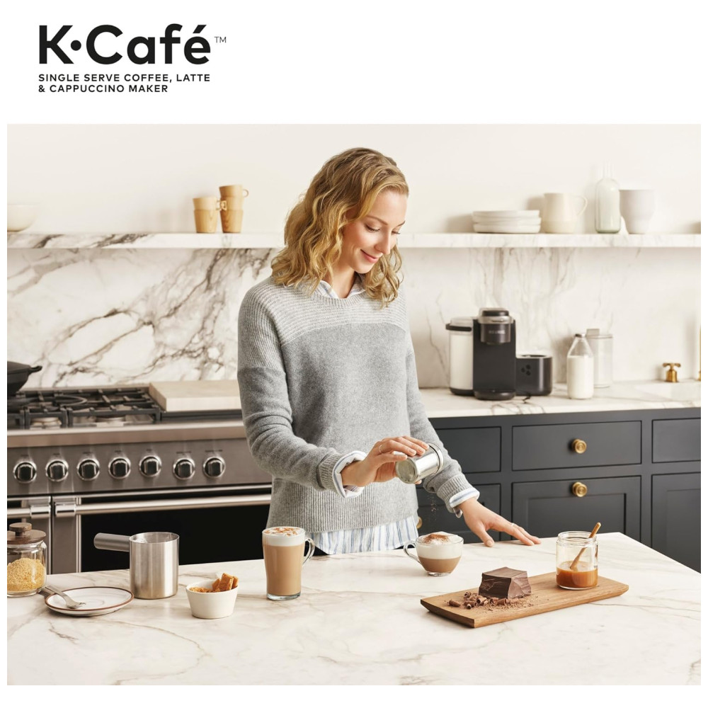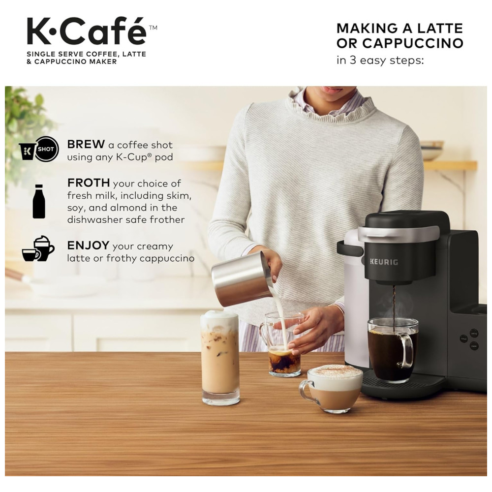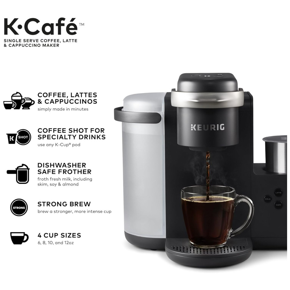 Desfrute do café rico e saboroso que você adora ou das deliciosas bebidas de café da nova máquina Keurig K Café de café, café com leite e cappuccino.