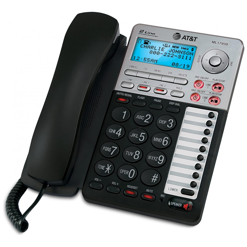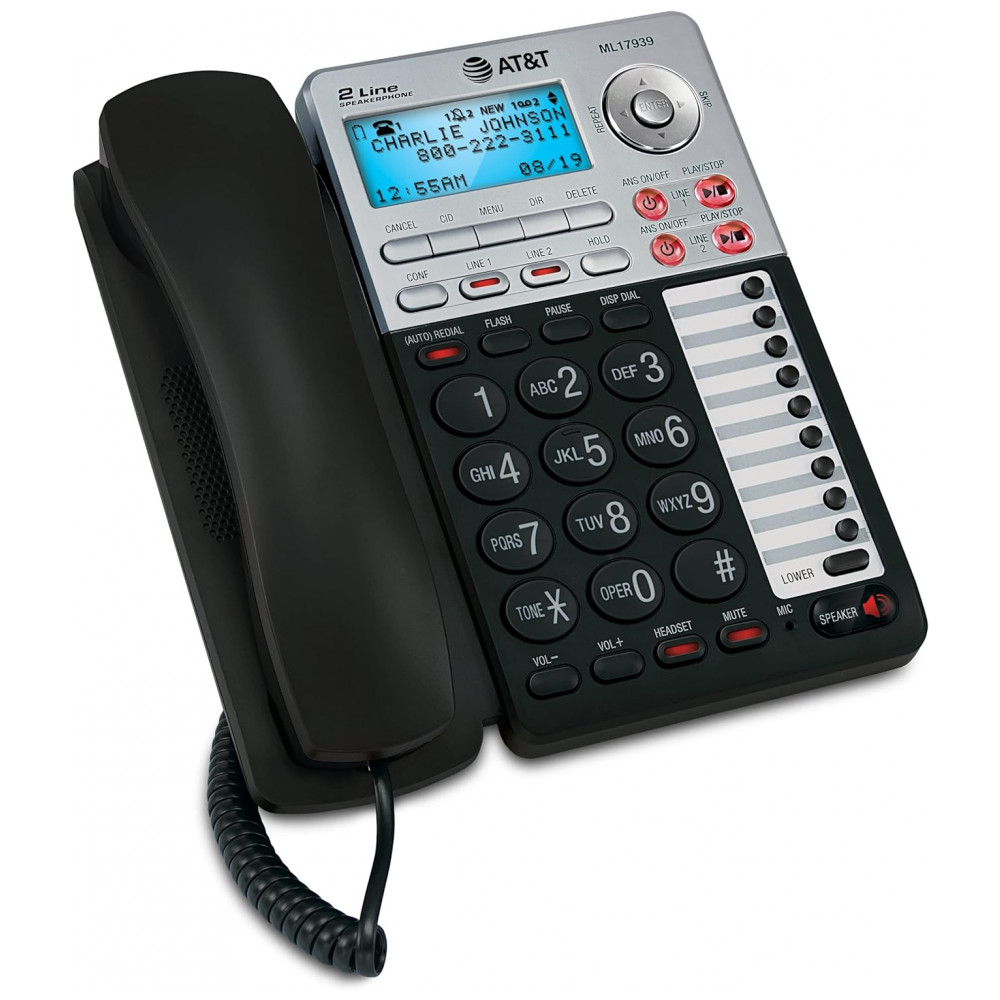 Telefone com Fio de 2 Linhas, Atendimento Digital e Identificador, 1 Ap, ATT ML17939, Preto: 100 Diretório de nomes , números Compatível com fone de ouvido conector de 2,.