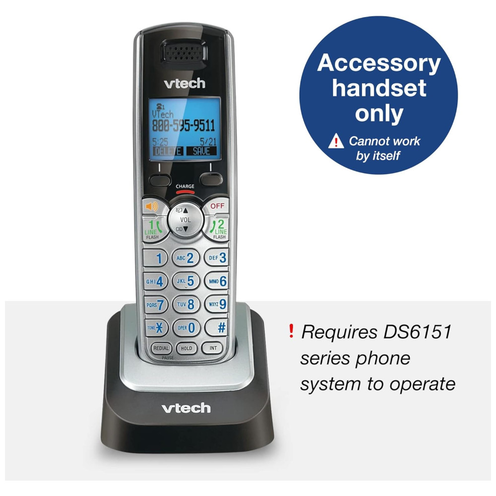 Monofone sem fio acessório VTech DS6101, prateado , preto Requer um sistema telefônico da série DS6151 para operar CRDLS de alta qualidade, FONE DE OUVIDO DE 2 LINHAS, CID Operação…