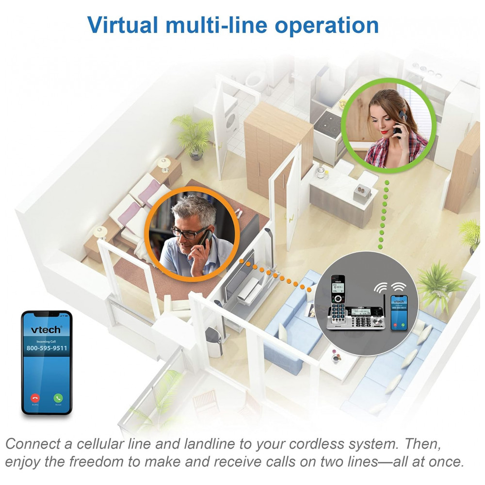 Telefone sem Fio com Sistema de Atendimento Digital, 5 Unidades, VTECH VS113 5, Preto: alcance estendido e conecte se à célula experimente a cobertura e a clareza de longo alcance estendidas, fornecidas por um design de antena exclusivo e avanços na tecnologia de filtragem de ruído.