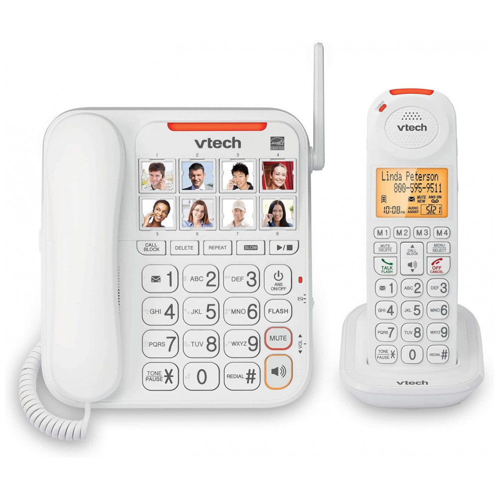 Telefone sem Fio Sênior Amplificado com Visor e Botões Grandes, 2 Unidades, VTECH SN5147, Branco: Bloqueador inteligente de chamadas diga adeus às chamadas indesejadas.