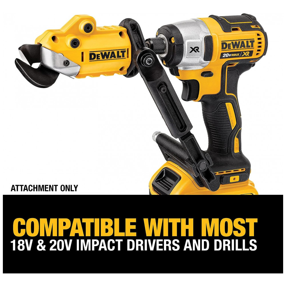 Tesoura Acessório para Chave de Impacto e Parafusaira, DEWALT DWASHRIR, Amarelo: Capaz de cortar até 18GA material Cabeça giratória de 360 graus para manobrabilidade Conecta se via haste hexagonal padrão de Compatível com a maioria das parafras e brocas de impacto de 18V 20V