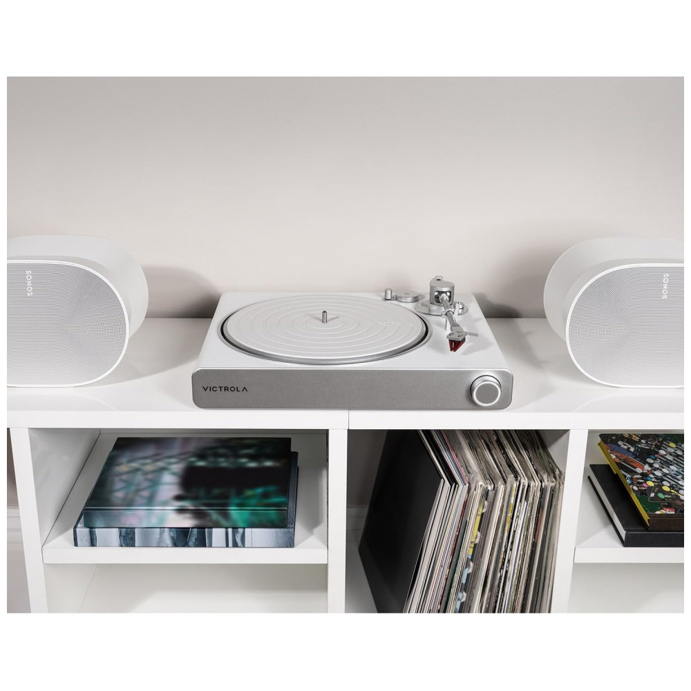 Toca Discos de Vinil 45 RPM Funciona com Sonos sem Fio, Cartucho de Alta precisão, Semiautomático, Wi Fi, RCA, Victrola, Branco
