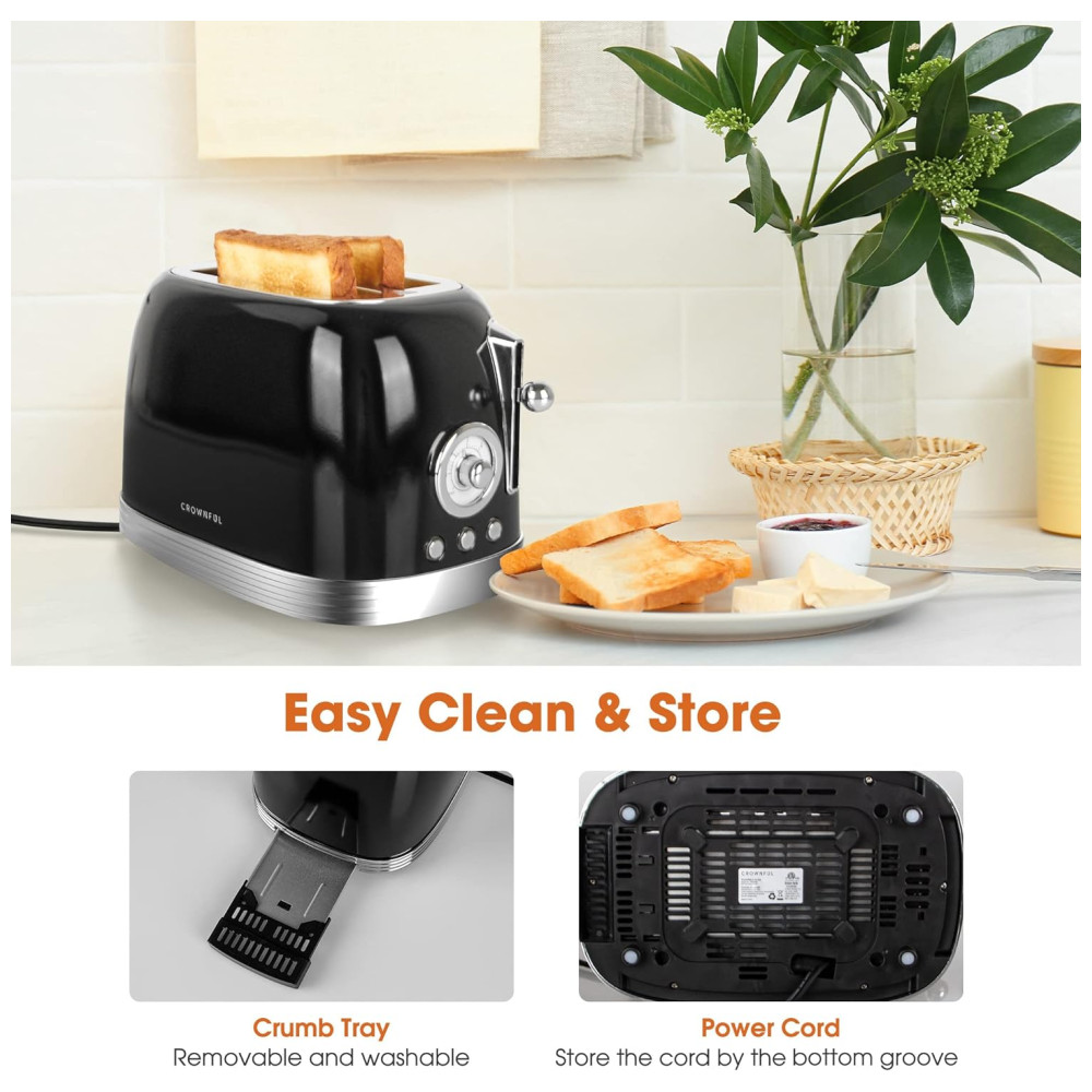 Torradeira 2 Fatias, Aço Inoxidável, 900W, 110v, CROWNFUL WT 330D, Preto