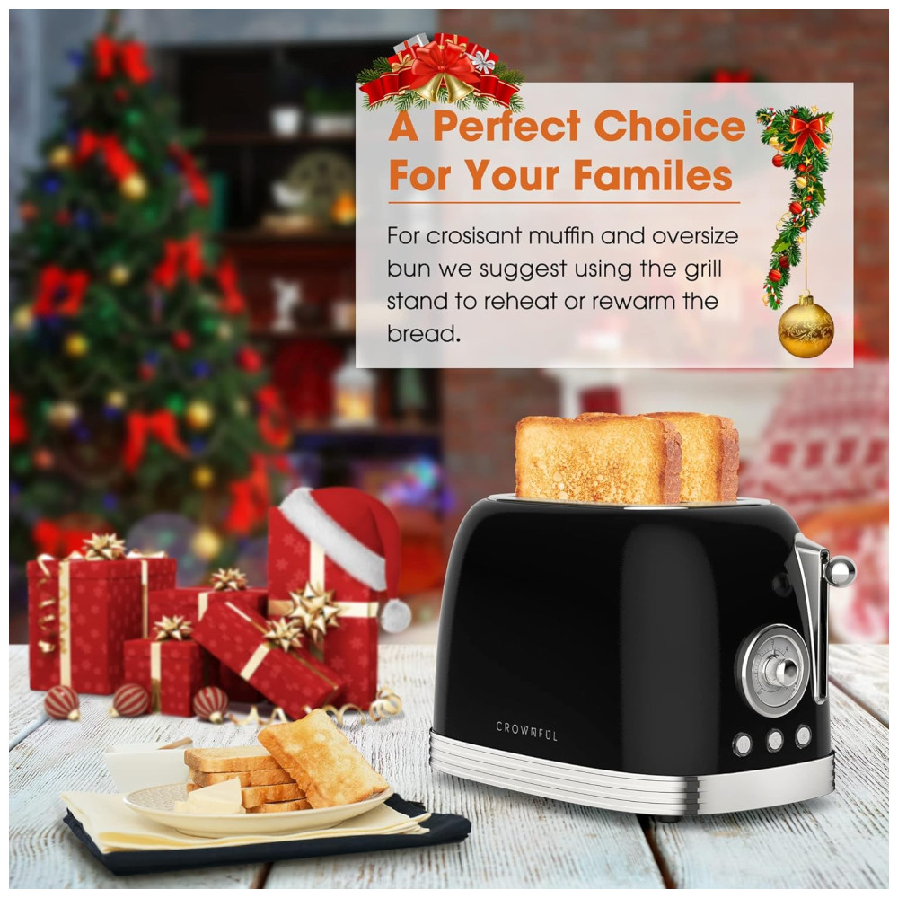 Torradeira 2 Fatias, Aço Inoxidável, 900W, 110v, CROWNFUL WT 330D, Preto: VÁRIOS MODOS DE TORRAR Torradeira com bagel, funções de cancelar e descongelar.