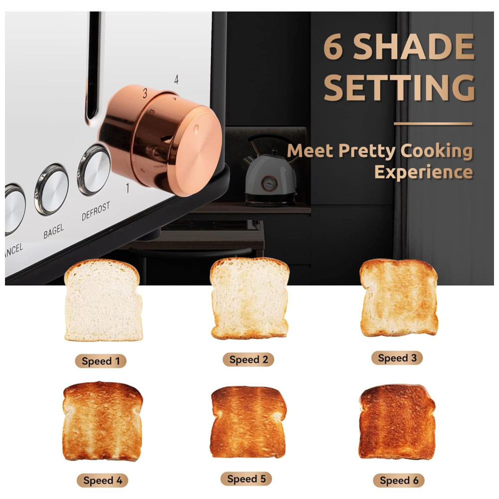 Além disso, a torradeira possui 6 configurações variáveis de tonalidade de torrada, permitindo que você crie pão leve, médio ou crocante em minutos.