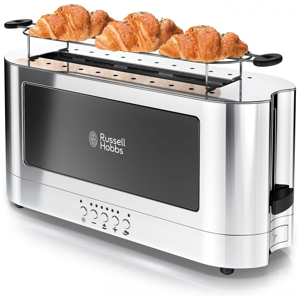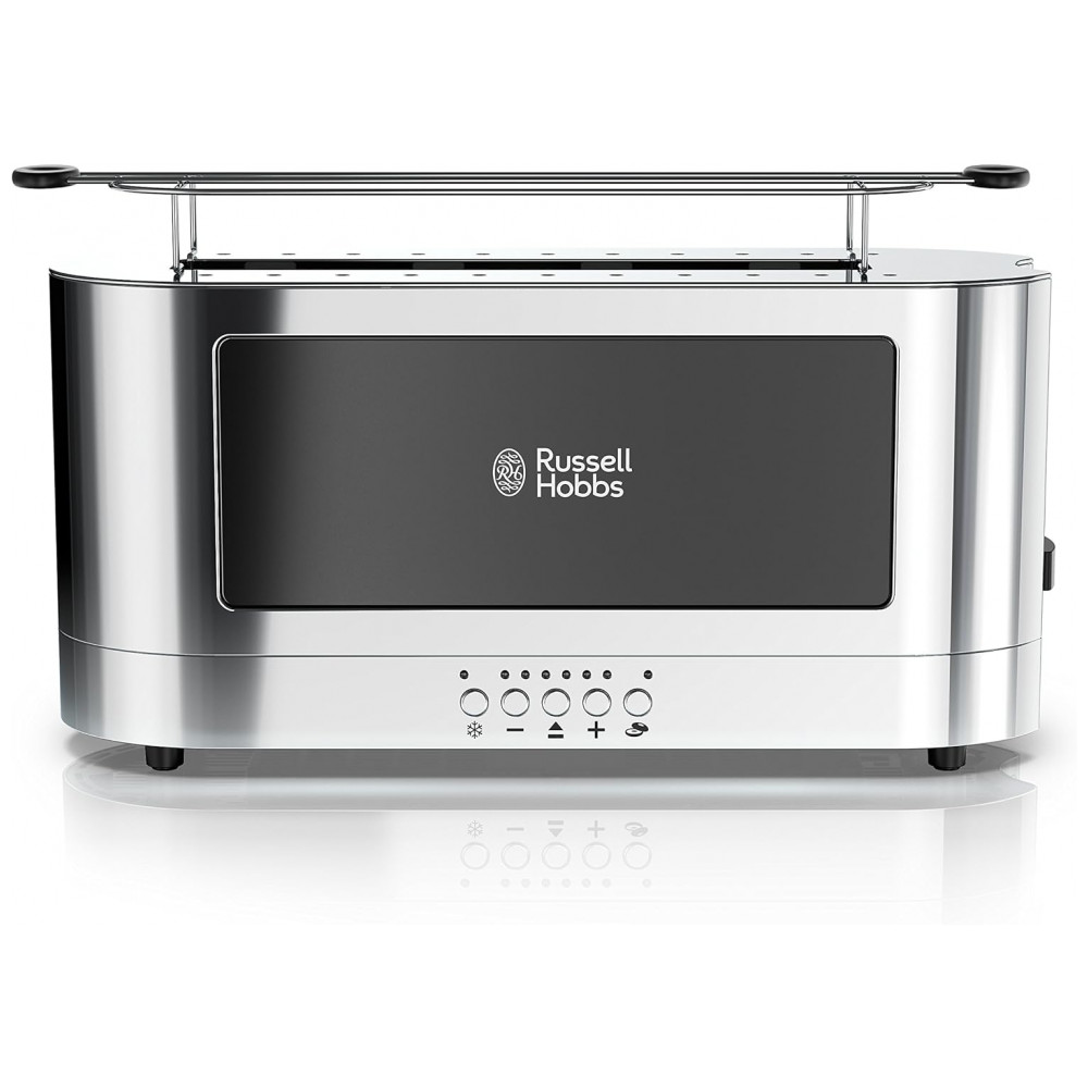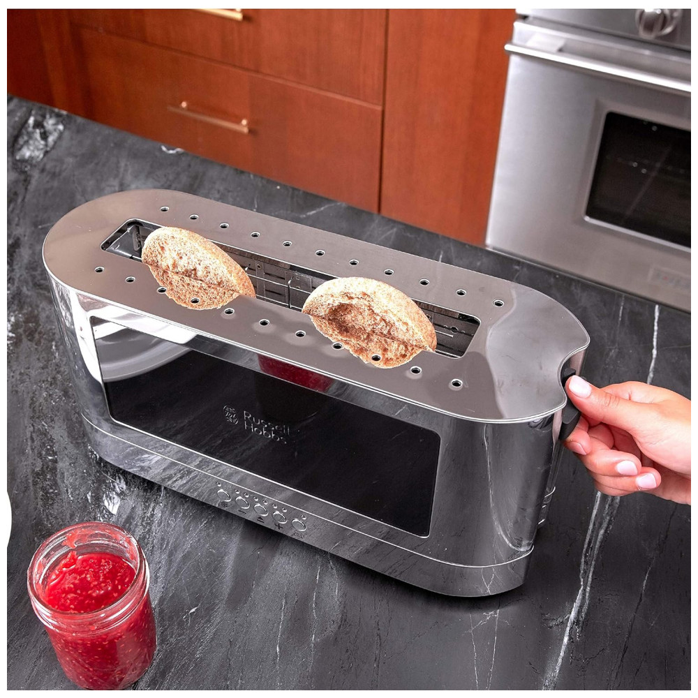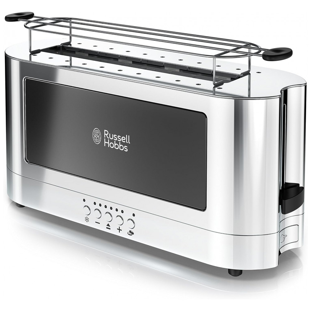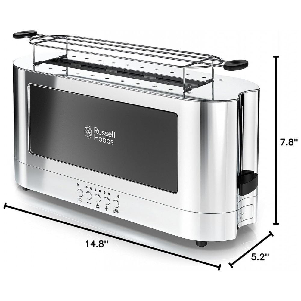 Torradeira de 2 Fatias com 6 Níveis de Tostagem, 1200W, 110v, RUSSELL HOBBS TRL9300BKR, Preto: Torradeira Longa O design estendido ocupa um lugar estreito em sua bancada, permitindo torrar facilmente pedaços longos de pão e torrar fatias menores lado a lado.