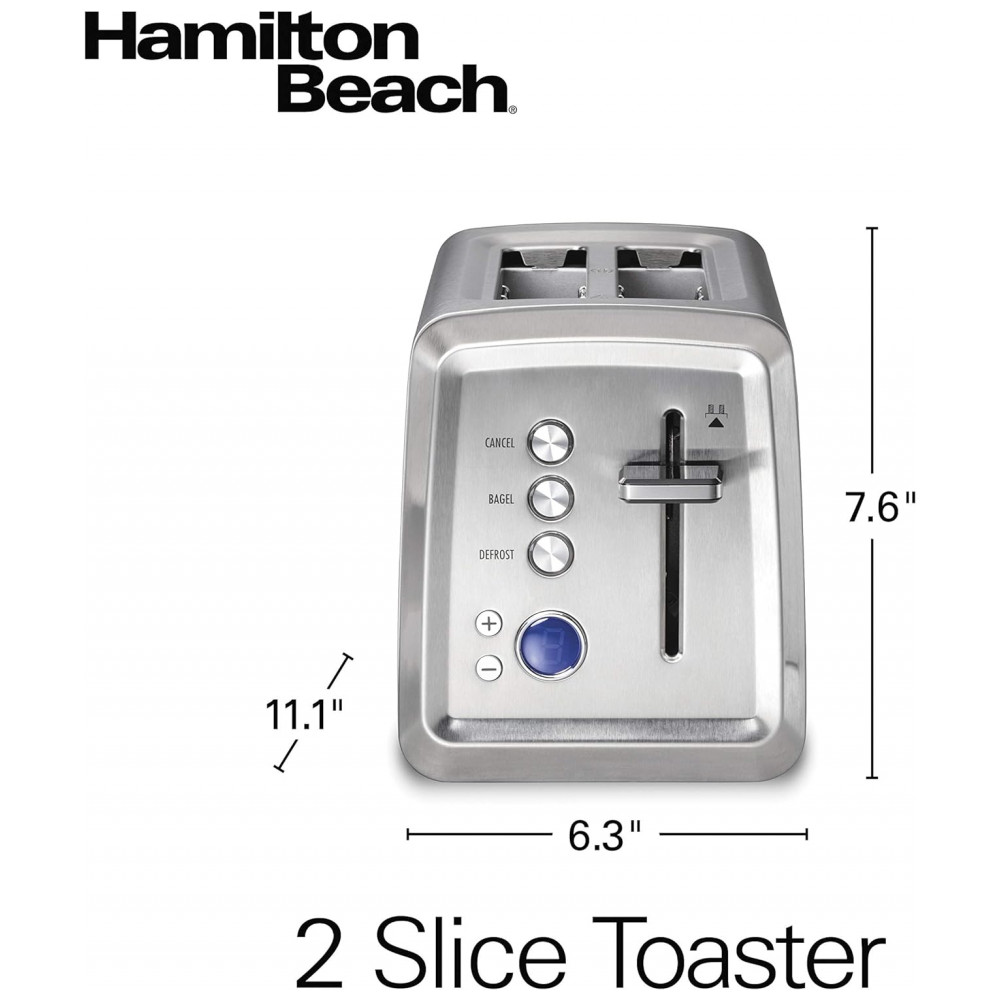 Torradeira de 2 Fatias com Função Bagel e Visor LCD, 1560W, 110v, HAMILTON BEACH 22796, Prateado