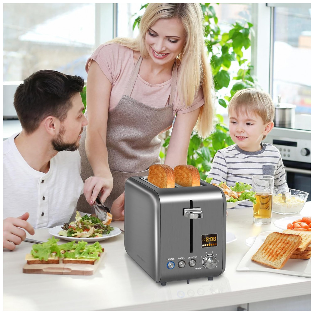 Torradeira Elétrica 2 Fatias com 7 Níveis de Tostagem, 900W, 110v, SEEDEEM, Cinza