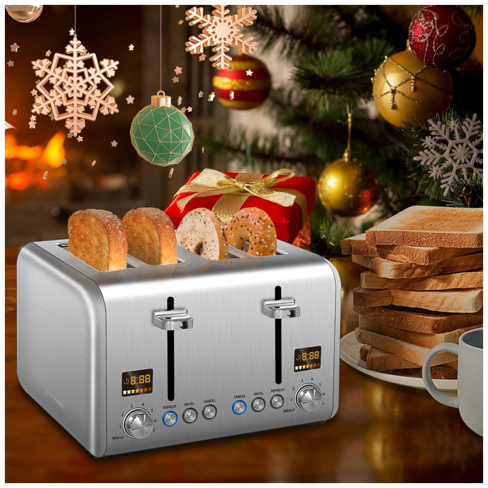 Torradeira Elétrica 4 Fatias com 7 Níveis de Tostagem, 1800W, 110v, SEEDEEM, Prateado