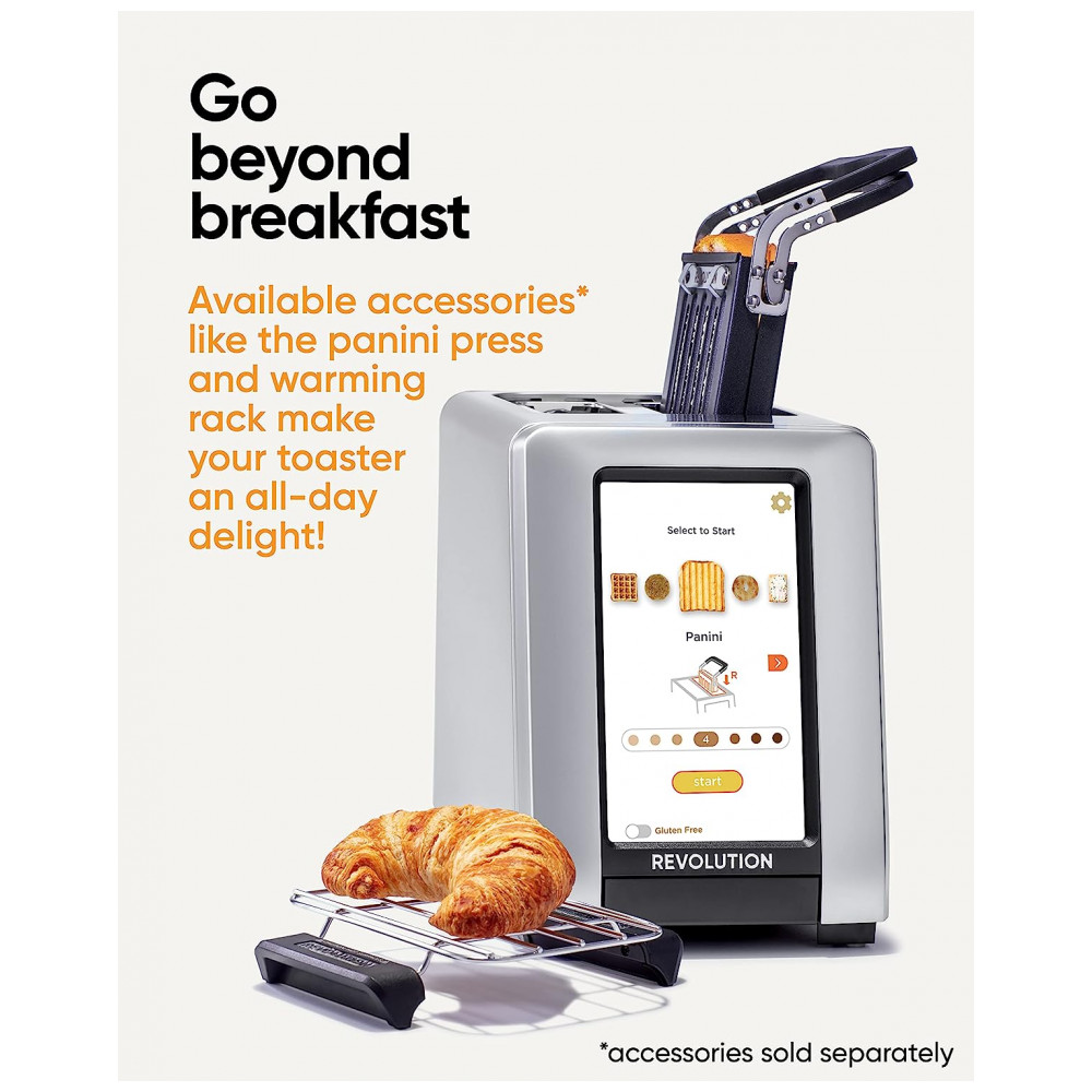 Torradeira Elétrica Multifunções 2 Fatias com Tela LCD e Aço Inoxidável, Branca, 110v, REVOLUTION R270, Branco: A melhor experiência de torrar, com configurações inteligentes para 34 tipos de pão e um menu inicial personalizável para manter seus favoritos a apenas um toque de distância.