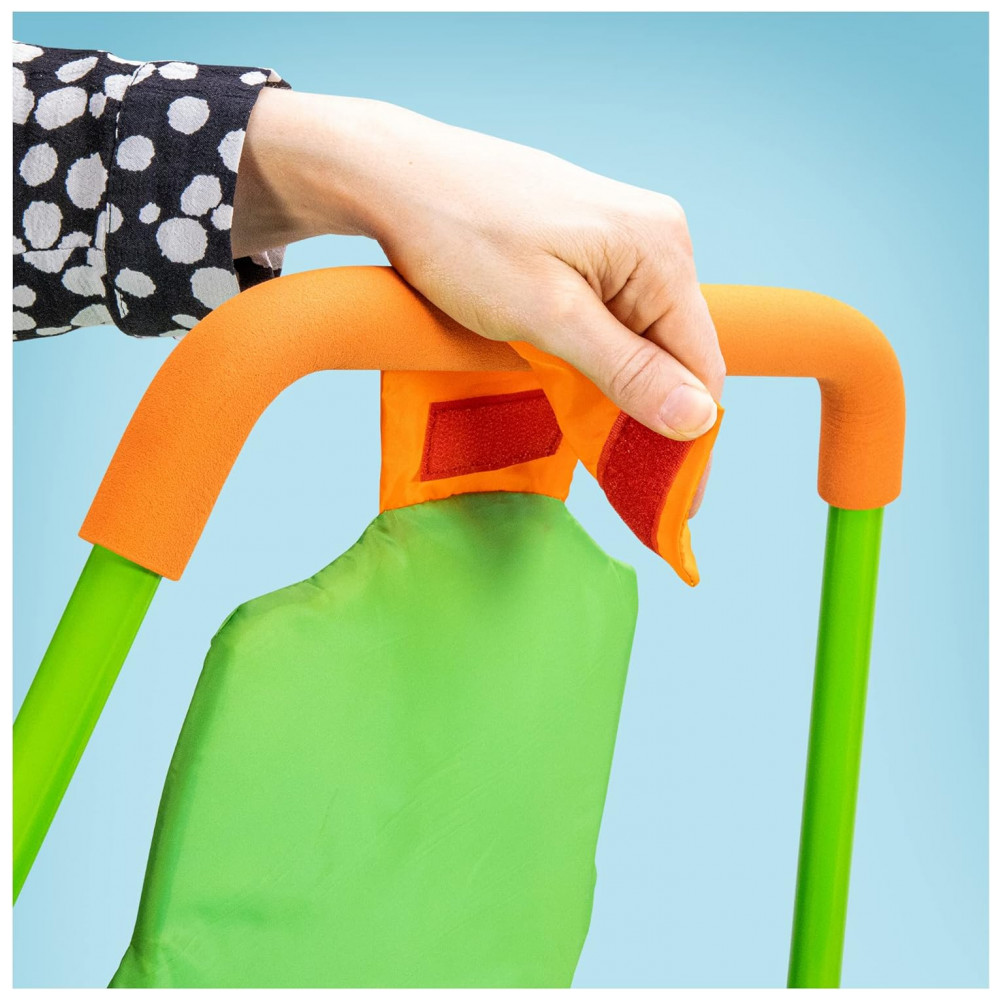 As crianças desenvolvem os seus músculos, o seu equilíbrio e a sua confiança enquanto se divertem saltando na cama elástica verde da Galt Toys As crianças vão adorar este trampolim de rosto sorridente com capa acolchoada, alça fácil de segurar, estrutura tubular de aço e pés de borracha