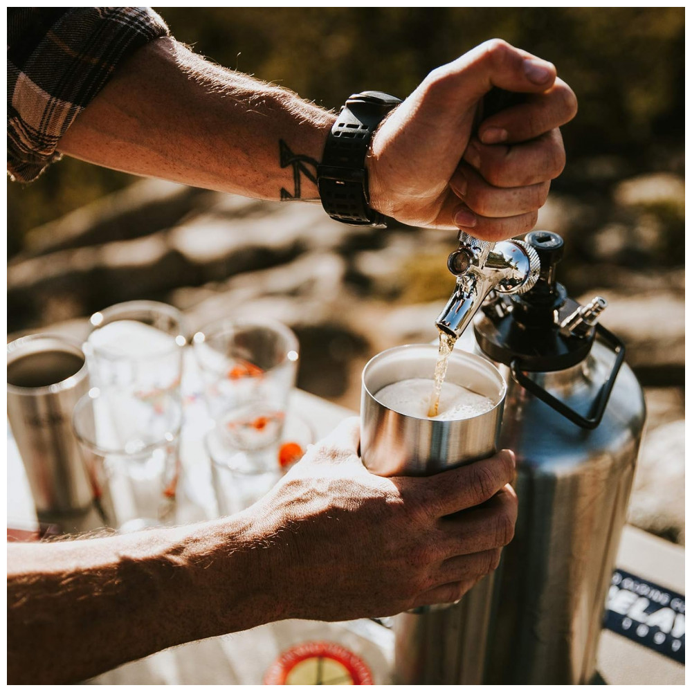 Basta preenchê lo, conectar a torneira e o regulador e despejar AVENTURISTA COMO VOCÊ o growler isolado a vácuo TrailKeg está pronto para a aventura como você é.