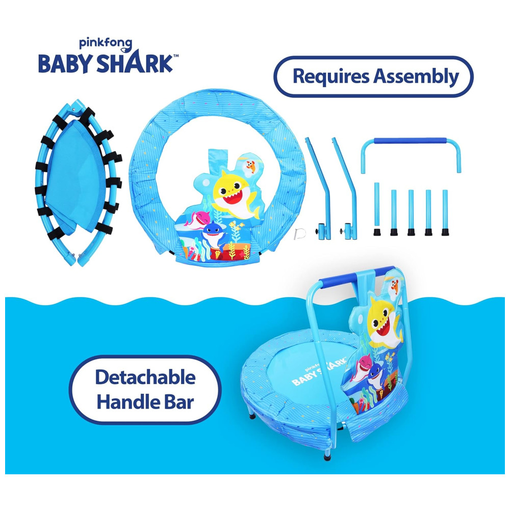 Proporcione às crianças uma maneira divertida e emocionante de pular, fazer exercícios e queimar energia com o trampolim infantil Baby Shark. Este mini trampolim é perfeito para ho…