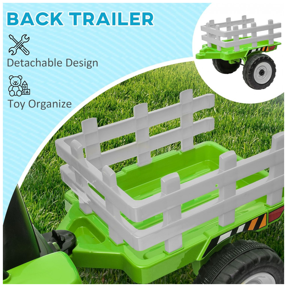 Trator Elétrico Infantil com Controle Remoto, Reboque, Motores Duplos de 25W, Som e Luzes LED, 12V, Aosom, Verde