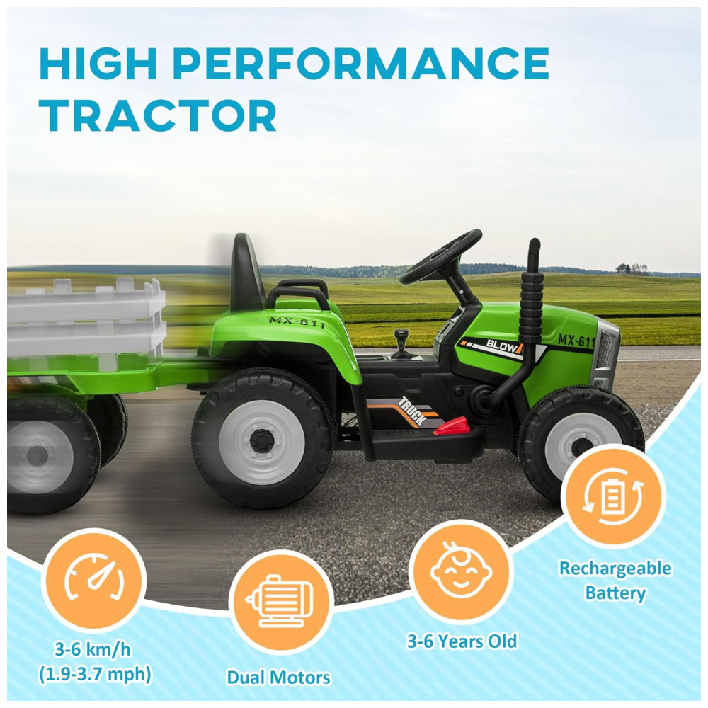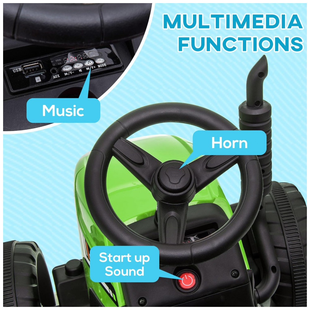 Trator Elétrico Infantil com Controle Remoto, Reboque, Motores Duplos de 25W, Som e Luzes LED, 12V, Aosom, Verde: Nosso trator infantil Rideon é perfeito para uma experiência de brincadeira aprimorada.