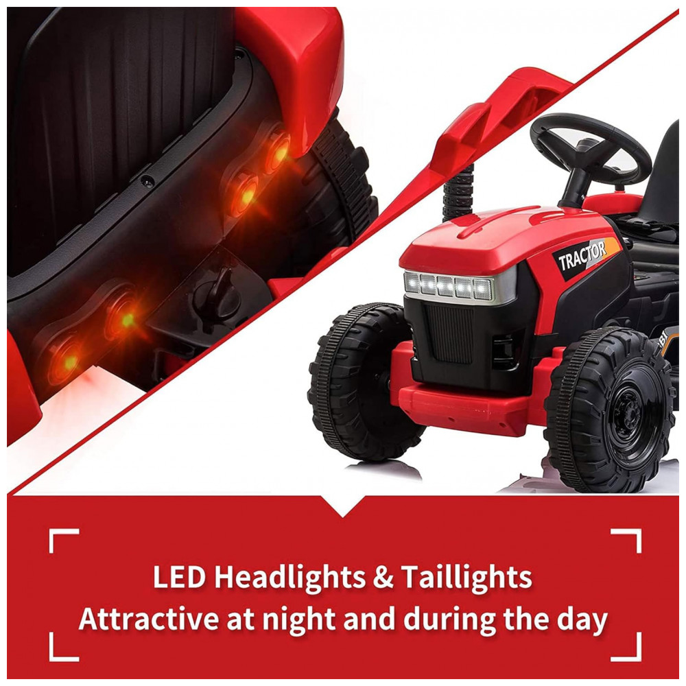 Trator Elétrico Infantil com Motor Duplo e Luzes LED, para 3 a 6 Anos, TOBBI, Vermelho