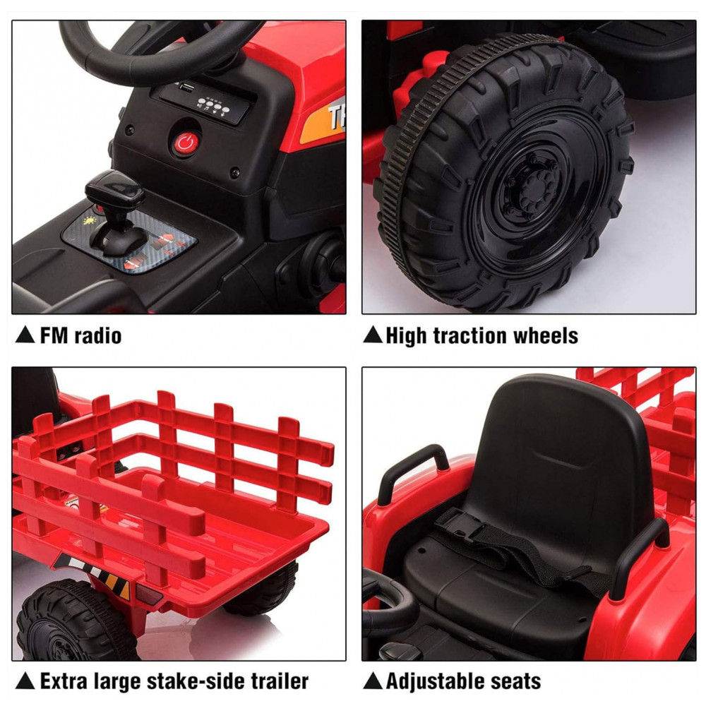 Trator Elétrico Infantil com Motor Duplo e Luzes LED, para 3 a 6 Anos, TOBBI, Vermelho: Desempenho excepcional Beneficiado de uma bateria recarregável premium com grande capacidade e dois motores potentes de 35 W, este trator de brinquedo pode ser conduzido rapidamente mesmo em terrenos complexos como grama, sujeira e cascalho por um longo tempo, suportando uma carga máxima de 24 kg .