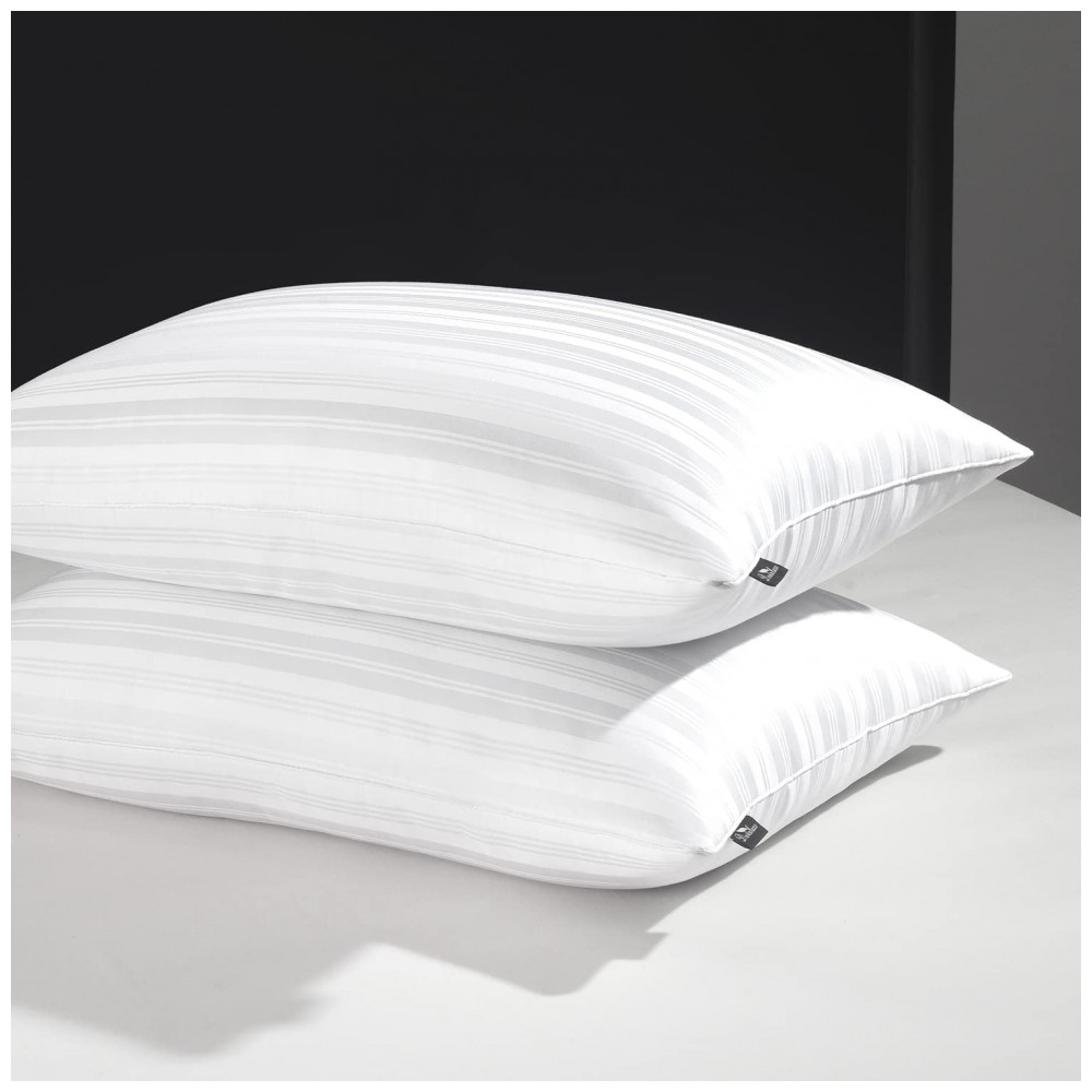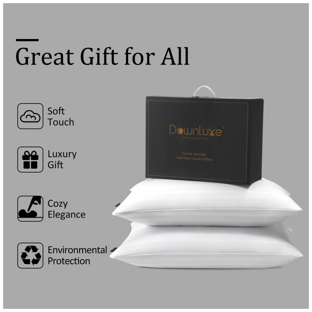 Desenho de tecido de camada dupla exclusivo para evitar que as penas o cutuquem ou quebrem durante a noite você tem que experimentar para acreditar PACOTE DE PRESENTE Essas almofadas de penas de plumas GOOSE são enviadas embaladas para você.