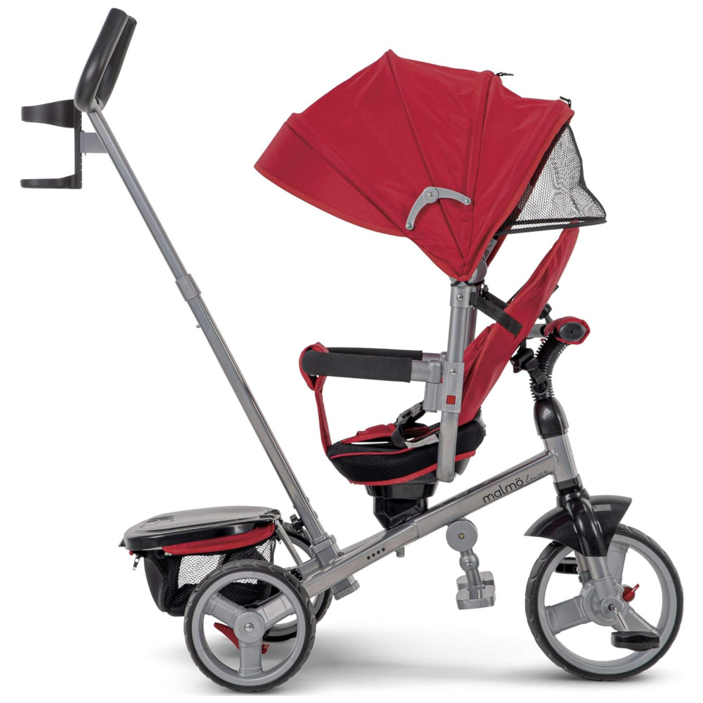 Triciclo Infantil 4 em 1 com Dossel Removível, Alça Ajustável, Apoio para os Pés Dobrável e Armazenamento, Huffy, Vermelho
