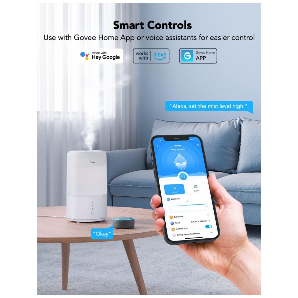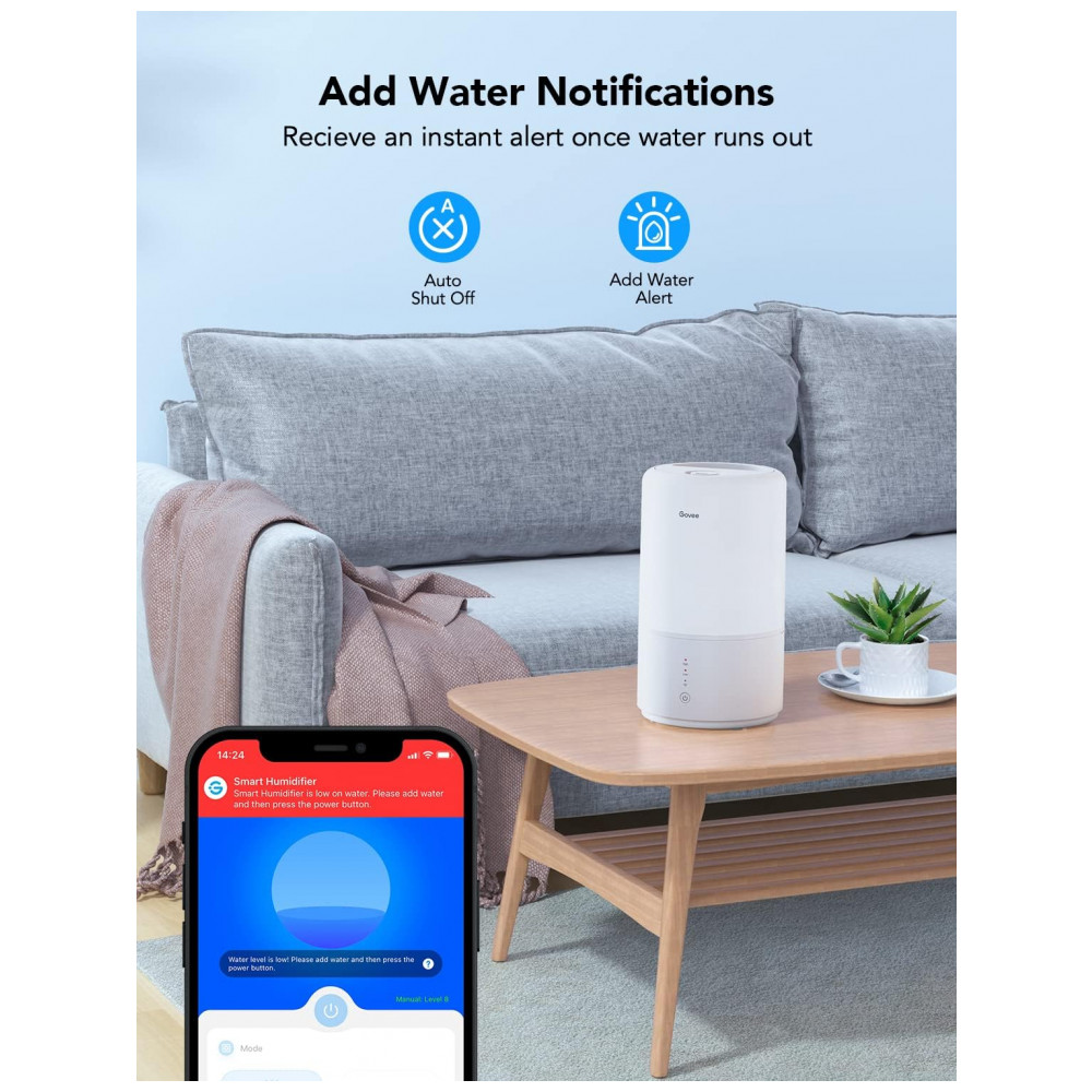 Umidificador Ultrassônico Portátil 3L com Aromaterapia, até 3H, Área 15m2, 110v, GOVEE H7141101, Branco: Smart App Control Primeiro, atualize o aplicativo para a versão mais recente 4.