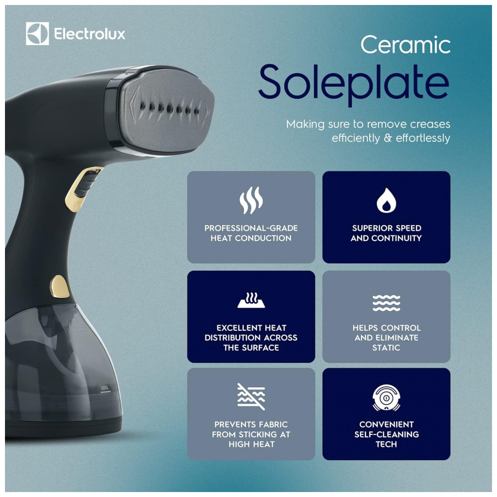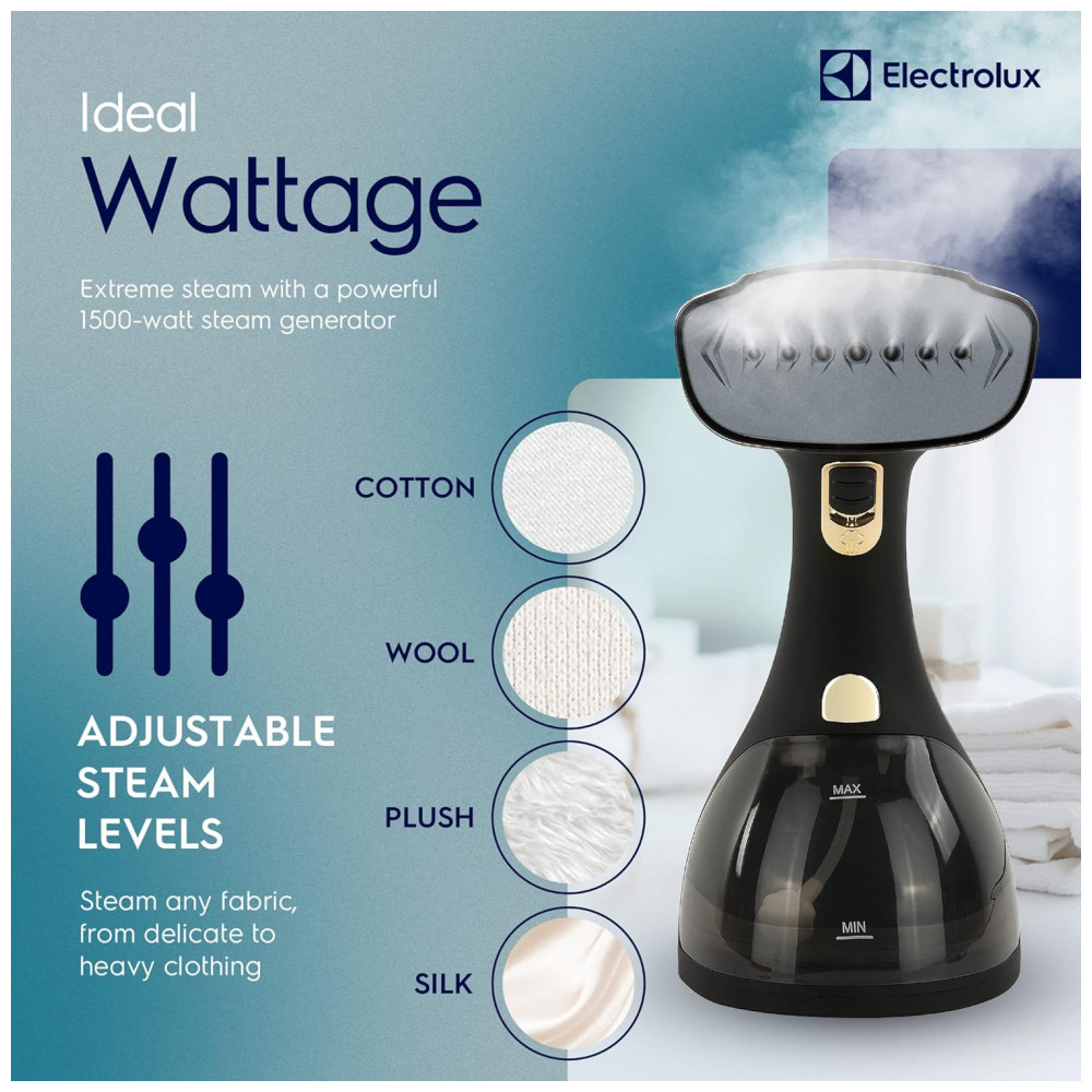 Vaporizador de Roupas 2 em 1 Portátil, Aquece em 30s, 300 mL,1500W, 110v, ELECTROLUX LX15002, Preto: INCLUI O vaporizador com cabo de alimentação de 2,5 metros, escova para tecidos, escova de fiapos e bocal de vapor repousa sobre uma base de cerâmica resistente, proporcionando opções versáteis e seguras de vaporização REMOVE DOBRAS COM EFICIÊNCIA O vaporizador reaquece em apenas 30 segundos, com um grande tanque de água destacável de 300 ml 10 onças para 18 minutos de vaporização contínua.