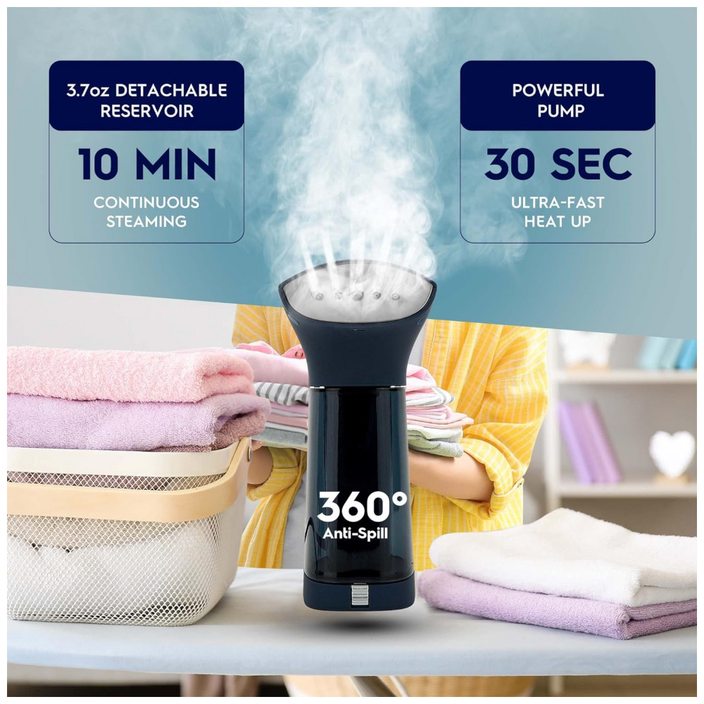 TAMANHO DE VIAGEM PORTÁTIL Refresque suas roupas em viagens de negócios e em família. O vaporizador de viagem compacto remove todas as rugas de suas roupas e cabe na menor bolsa de…