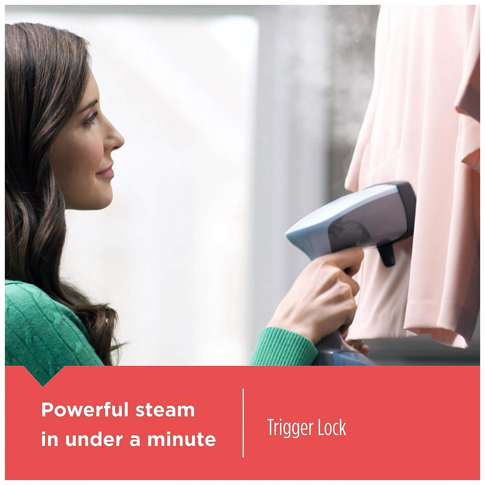 Desligamento automático Após 15 minutos de inatividade, o vaporizador desligará automaticamente Vapor Contínuo Trave o gatilho de vapor no lugar para liberar um fluxo contínuo de vapor que derrete as rugas rapidamente Explosão de vapor aperte o gatilho de vapor para gerar uma poderosa explosão de vapor que elimina as rugas Acessórios Use os acessórios incluídos para trabalhos especiais estofamento, tecidos delicados e remoção de fiapos