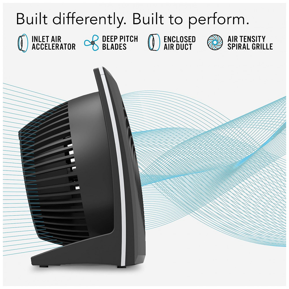 Apresentando o Vornado 573 Circulador de Ar Compacto com Painel Plano, um ventilador que utiliza a exclusiva tecnologia Vortex para mover o ar de forma eficaz em todo o ambiente.
