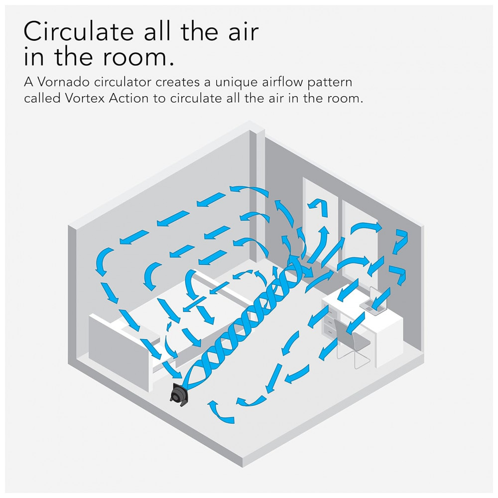 Projetado para oferecer fluxo de ar multidirecional, o Vornado 573 direciona um jato potente de ar horizontalmente pela sala ou verticalmente em direção ao teto, garantindo uma ventilação completa.
