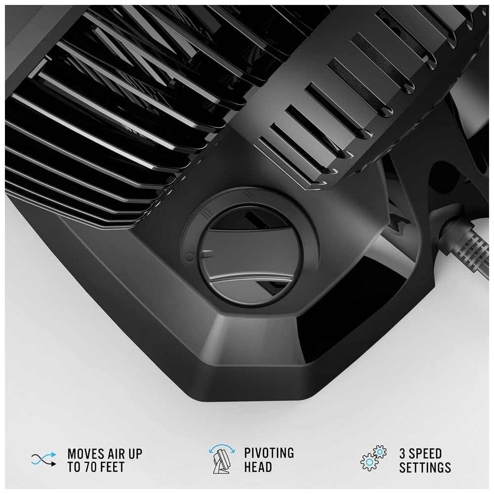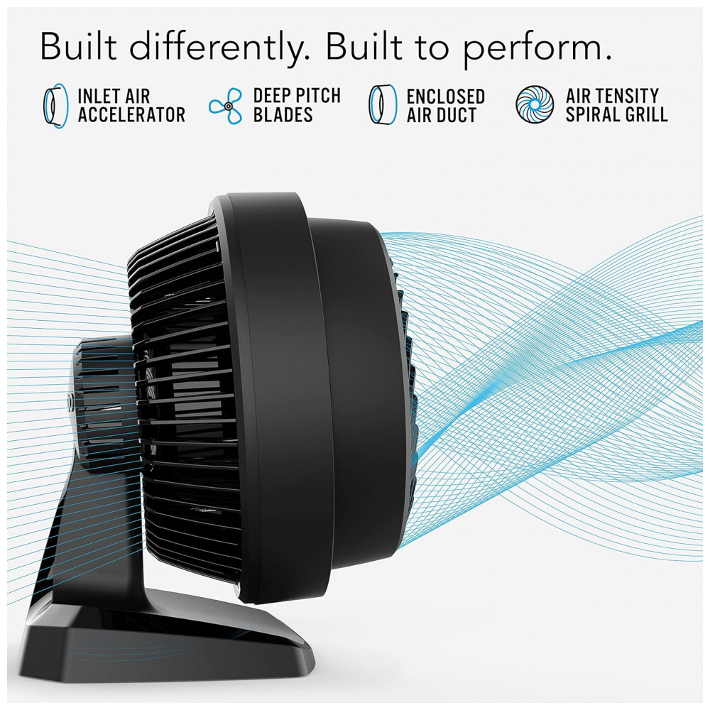 DESEMPENHO ÓTIMO Equipado com lâminas de inclinação profunda e tecnologia avançada de fluxo de ar, este ventilador Vornado possui um duto de ar fechado e uma grade espiral, proporcionando desempenho ideal.