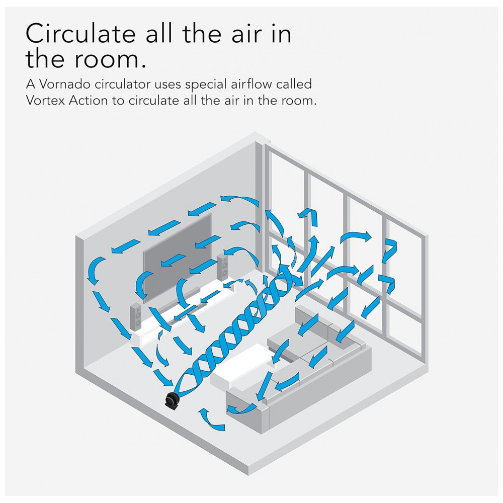 FLUXO DE AR MULTIDIRECIONAL O fluxo de ar multidirecional deste circulador Vornado é projetado para atender às suas necessidades.