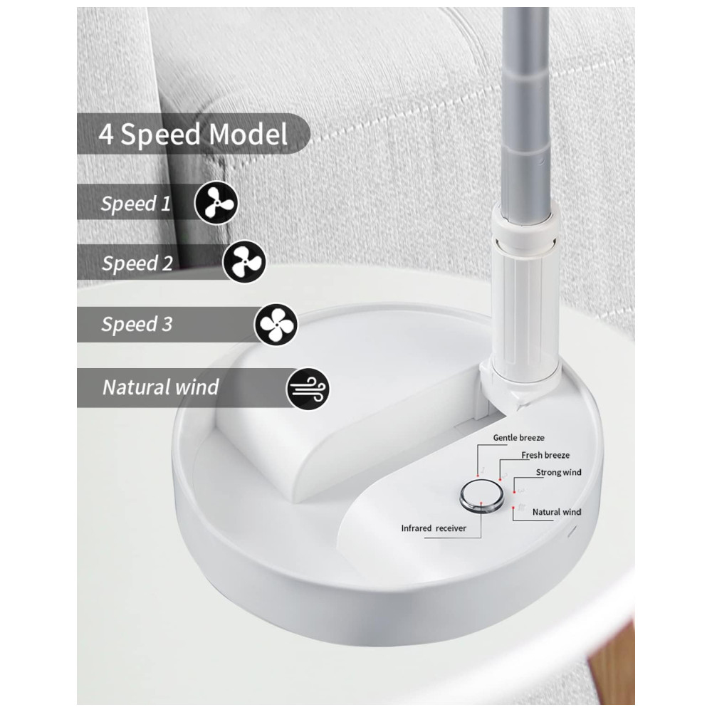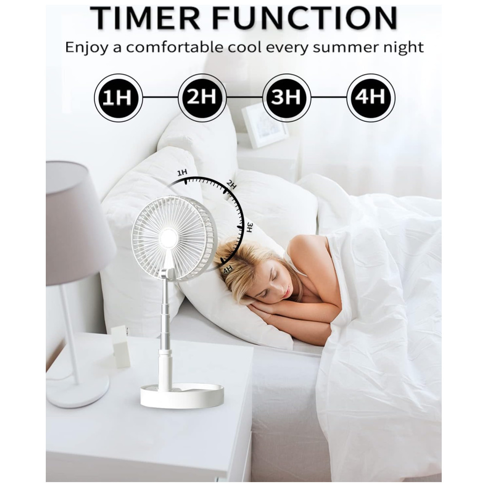 Ventilador de Mesa com 4 Velocidades e Controle Remoto, USB, 110V, Unitedtime, Branca: Descubra o Ventilador Dobrável UN UNITEDTIME Portátil e Compacto Com altura dobrada de 9,4 x 19,7 cm e peso de 0,83 kg, ajusta se de 36 cm até 1 m, funcionando como ventilador de mesa ou circulador de ar de piso.