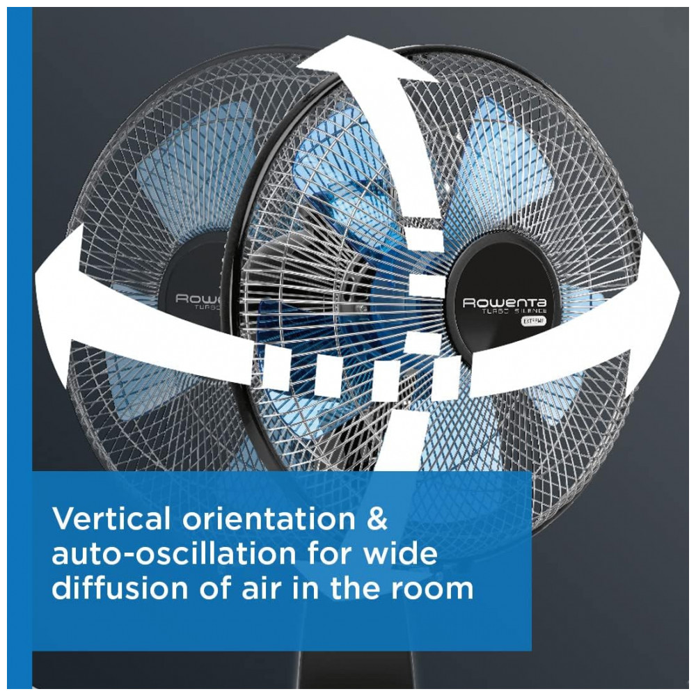 Ventilador de Mesa com 4 Velocidades, Silencioso, 110V 60W, ROWENTA VU2631, Preto: Conheça o Ventilador de Mesa Rowenta Turbo Silence, 45 cm ULTRA SILENCIOSO Com operação super silenciosa de apenas 38 dB A em todas as velocidades, este ventilador é ideal para uso em quartos ou escritórios, garantindo um ambiente tranquilo e confortável para descansar ou trabalhar.