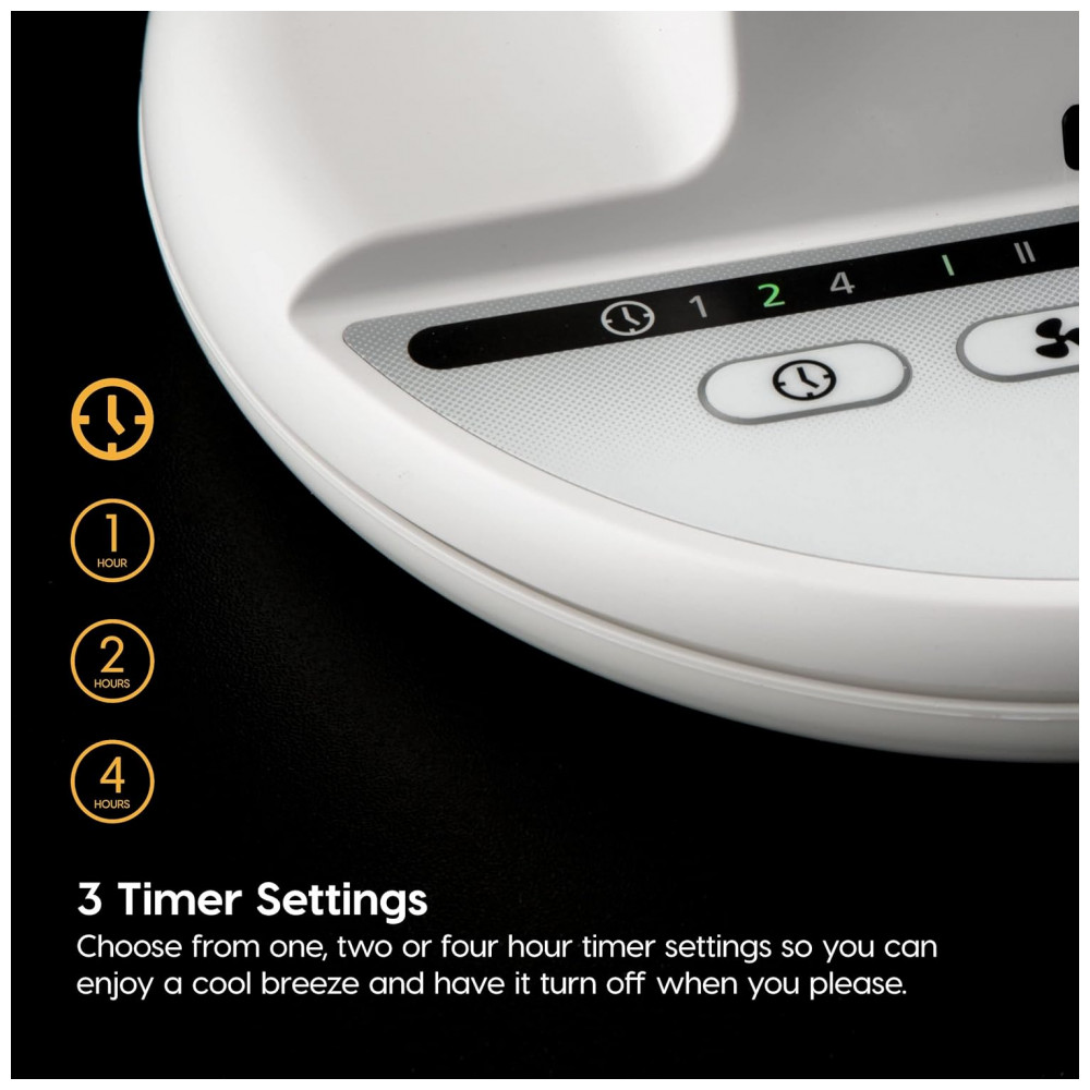 Com a função de temporizador, defina o desligamento automático para 1, 2 ou 4 horas, garantindo economia e conforto.