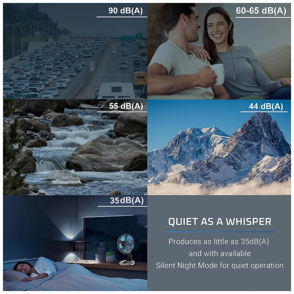 Controles eletrônicos fáceis de usar ajuste facilmente as 5 configurações de velocidade, incluindo o modo Turbo Boost para potência extra e o modo Silent Night para uma operação sem ruídos.