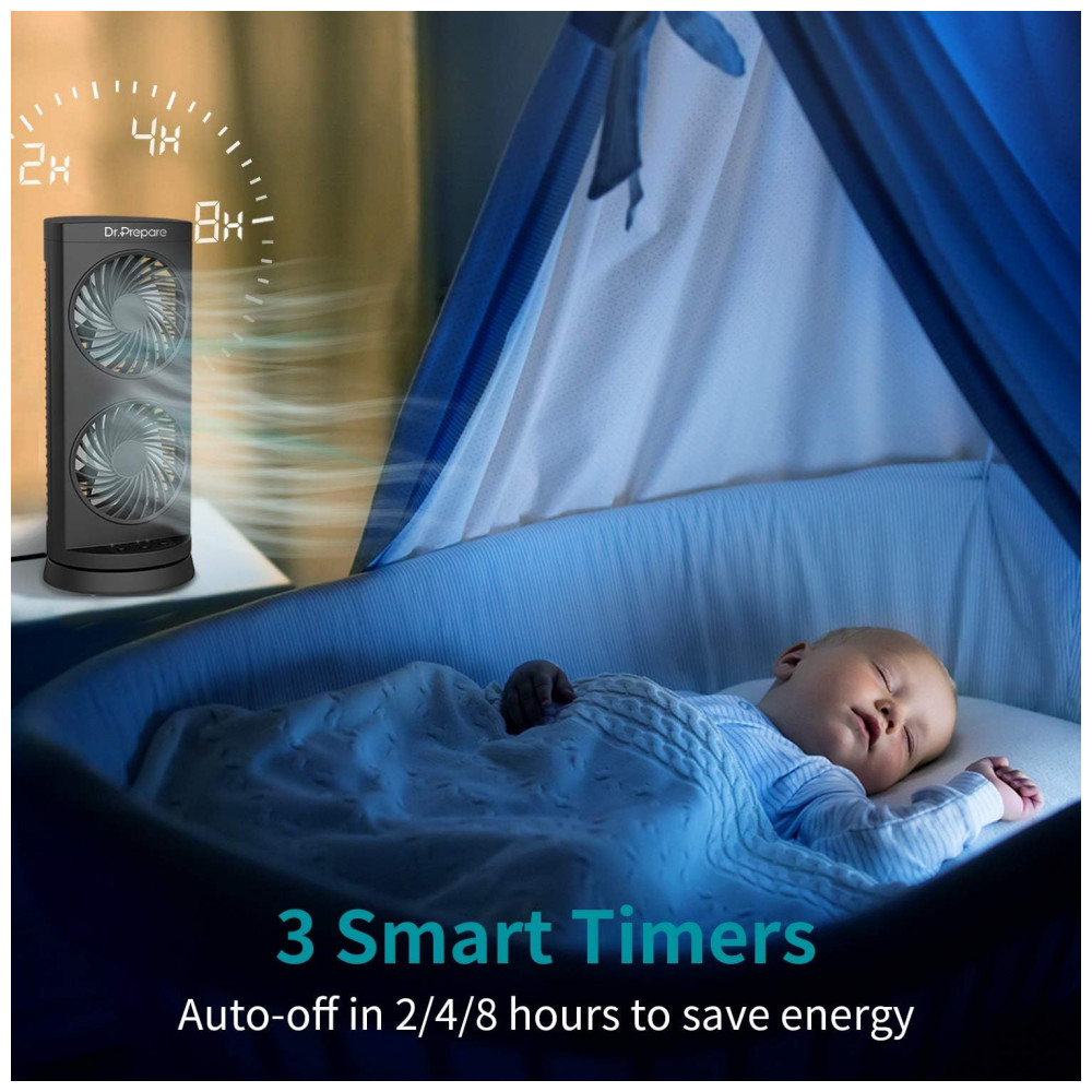 3 Temporizadores Automáticos Escolha entre 2, 4 ou 8 horas para uma ventilação contínua e fresca durante a noite, mantendo o ar circulando ao lado da cama para um sono confortável.