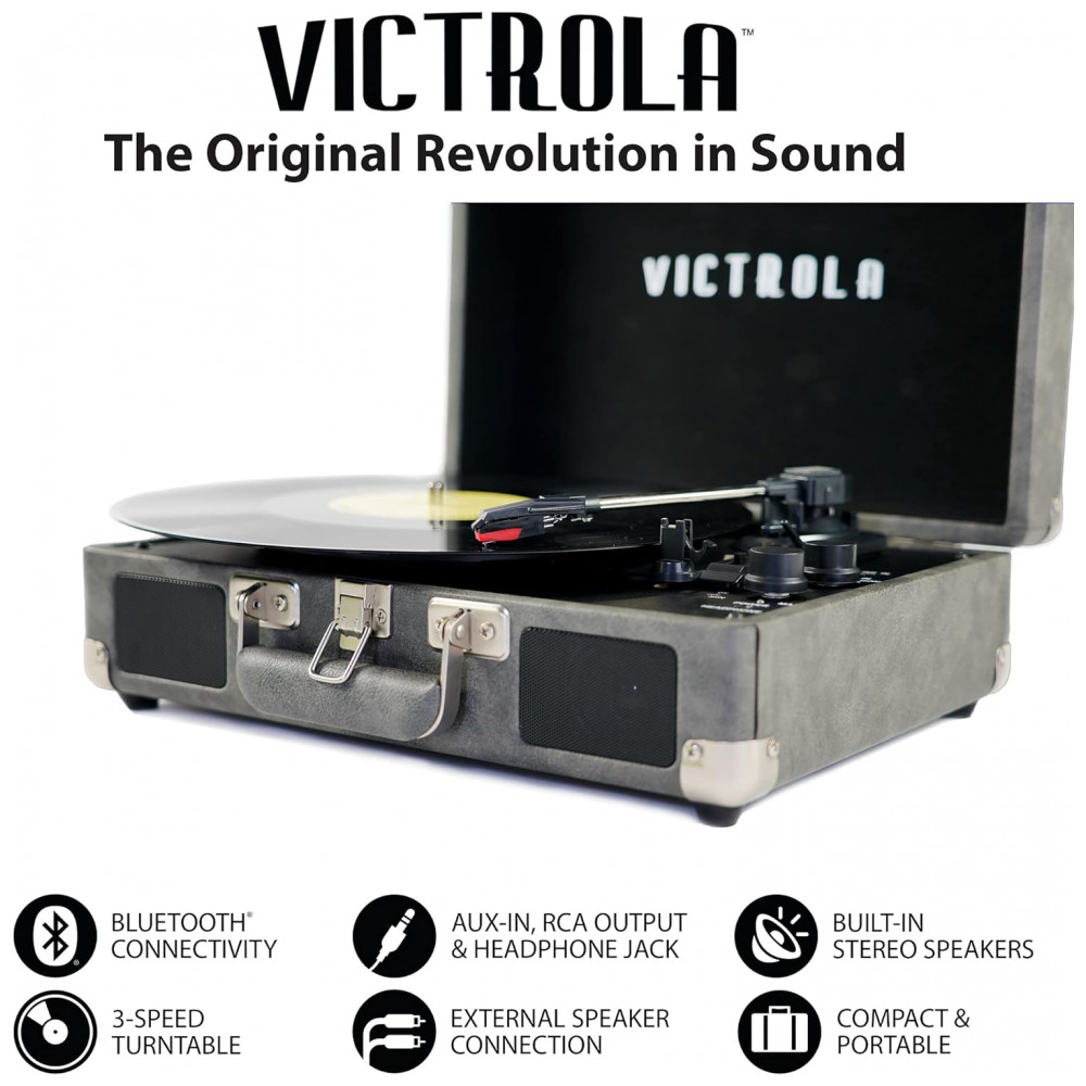 Vitrola Toca Discos 3 Velocidades, com Bluetooth, 45 RPM, 110v, VICTROLA VSC 550BT GRY, Preto: O toca discos portátil Victrola é um clássico absoluto e repleto de recursos.