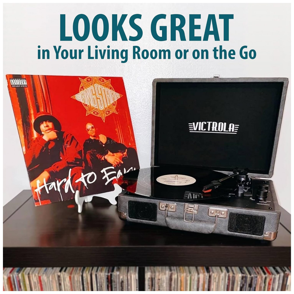 O toca discos portátil Victrola é um clássico absoluto e repleto de recursos. Inclui tecnologia Bluetooth integrada para transmitir música sem fio de qualquer dispositivo habilitad…